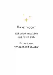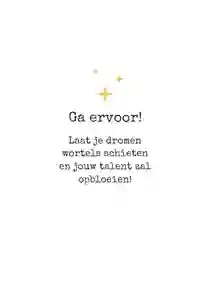 Wil je een persoonlijke touch aan de kaart met spreuk geven? Dat kan in onze kaartmaker. Zo kun je zelf kiezen welke tekst je toevoegt en waar je deze op de kaart plaatst. Dat kan een grappige quote zijn, een mooi gedicht of een inspirerende tekst. De mogelijkheden zijn oneindig!