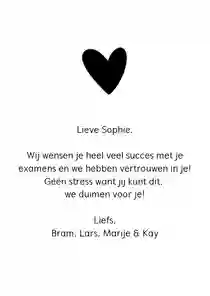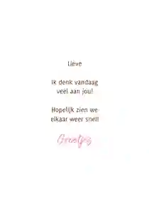 Je kiest een kaart uit onze collectie motiverende kaarten, of je maakt je eigen kaart helemaal zelf. Je kan zelf teksten, foto's, figuren en kaders toevoegen zodat het echt jouw eigen kaart wordt. Bestel je voor 21:00 uur, dan doen wij je kaart diezelfde dag nog op de bus.