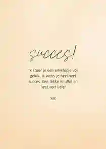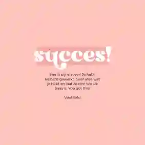 Het leven bestaat niet altijd uit rozengeur en maneschijn. Soms doen zich ook spannende situaties voor, om leuke en minder leuke redenen. Weten dat er aan je gedacht wordt, kan dan een groot verschil maken. Gaat er iemand in jouw omgeving door een moeilijke, spannende of intensieve tijd? Stuur hem of haar een kaartje met ‘succes’ erop en voeg er een persoonlijke tekst aan toe. Zet er eventueel een lieve foto naast of neem een bemoedigend filmpje op. De ontvanger haalt vast en zeker troost, medeleven of hernieuwde energie uit zo’n attente ‘succes’ kaart.