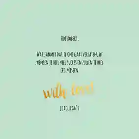 Aan een nieuwe baan beginnen is niet niets. Je krijgt een nieuwe werkplek, andere collega’s en een overload aan informatie. Veel mensen vinden starten aan een nieuwe baan dan ook best stressvol. Gaat een vriend(in), familielid of een ex-collega een nieuwe uitdaging aan? Stuur de carrieretijger een hippe kaart met ‘Succes met je nieuwe baan’ of ‘Good luck in your new job’. Ook tussen onze felicitatiekaarten voor een nieuwe baan zitten leuke ontwerpen. Is de nieuwe baan nog niet in the pocket? Een ‘succes met solliciteren’ kaart sturen kan natuurlijk ook!