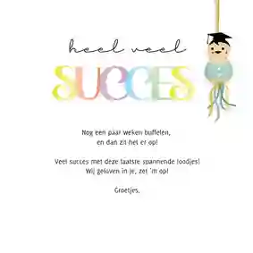Is er een topper in jouw familie of vriendengroep die binnenkort examen gaat doen? Laat weten dat je aan jouw vriendin, neefje of buurmeisje denkt. Wens hem of haar succes met het examen via een leuke kaart.