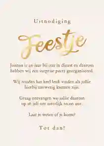 Tip: Ben je van plan om ook de partner van de jubilaris uit te nodigen? Dan kun je dat het best telefonisch doen om te voorkomen dat de verrassing in duigen valt.