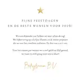 Zoek je een eenvoudige manier om waardering te tonen? Dan zijn zakelijke kerstkaarten voor bouwbedrijven een leuke optie. Kerstkaarten voor de bouw zijn niet alleen een warm gebaar, maar ook een slimme zakelijke zet. Ze versterken je zakelijke relaties en zorgen voor een goede indruk bij je partners in de bouwsector. Bedank klanten bijvoorbeeld voor een succesvol project, of stuur je zakelijke relaties een persoonlijke kerstgroet. Want met een leuke zakelijke kerstkaart weten je relaties dat ze op je kunnen bouwen!