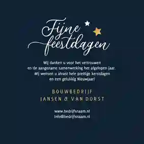 Vergeet niet om je medewerkers in de bouwsector tijdens de feestdagen een speciale blijk van waardering te sturen. Kerstkaarten voor medewerkers zijn een hartverwarmende manier om je dankbaarheid te tonen voor hun harde werk en toewijding gedurende het hele jaar. Laat je team weten dat je hun inzet waardeert en wens ze een vrolijke kerst en een voorspoedig nieuwjaar. Zo staat je kerstkaart voor de bouwsector als een huis!