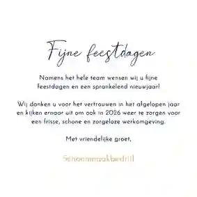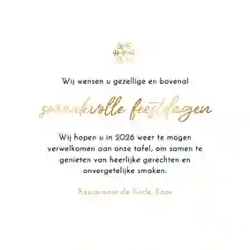 Je werknemers geven je bedrijf glans, en dat benadruk je met een glinsterende zakelijke kerstkaart! Zwierige gouden letters, stralende zilveren sterren of juist funky holografische details: zakelijke kerstkaarten met foliedruk zijn perfect om je medewerkers in het zonnetje te zetten. Wil je graag een warme kerstwens overbrengen? Dan zorgt een zakelijke kerstkaart met koperen of holografische details voor een extra gezellig kerstgevoel. En kies je liever een fonkelende uitnodiging voor de kerstborrel? Dan brengt gouden foliedruk je werknemers helemaal in de feeststemming. Zo laat je je zakelijke kerstkaart nog meer sprankelen!