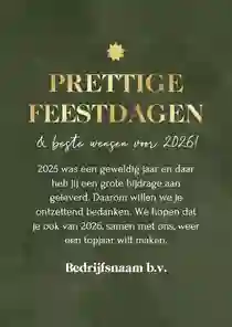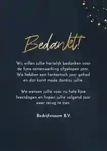 Je werknemers geven je bedrijf glans, en dat benadruk je met een glinsterende zakelijke kerstkaart! Zwierige gouden letters, stralende zilveren sterren of juist funky holografische details: zakelijke kerstkaarten met foliedruk zijn perfect om je medewerkers in het zonnetje te zetten. Wil je graag een warme kerstwens overbrengen? Dan zorgt een zakelijke kerstkaart met koperen of holografische details voor een extra gezellig kerstgevoel. En kies je liever een fonkelende uitnodiging voor de kerstborrel? Dan brengt gouden foliedruk je werknemers helemaal in de feeststemming. Zo laat je je zakelijke kerstkaart nog meer sprankelen!