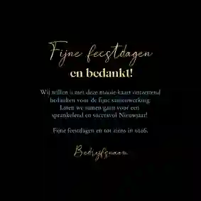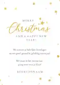 Je werknemers geven je bedrijf glans, en dat benadruk je met een glinsterende zakelijke kerstkaart! Zwierige gouden letters, stralende zilveren sterren of juist funky holografische details: zakelijke kerstkaarten met foliedruk zijn perfect om je medewerkers in het zonnetje te zetten. Wil je graag een warme kerstwens overbrengen? Dan zorgt een zakelijke kerstkaart met koperen of holografische details voor een extra gezellig kerstgevoel. En kies je liever een fonkelende uitnodiging voor de kerstborrel? Dan brengt gouden foliedruk je werknemers helemaal in de feeststemming. Zo laat je je zakelijke kerstkaart nog meer sprankelen!
