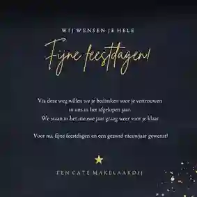 Je werknemers geven je bedrijf glans, en dat benadruk je met een glinsterende zakelijke kerstkaart! Zwierige gouden letters, stralende zilveren sterren of juist funky holografische details: zakelijke kerstkaarten met foliedruk zijn perfect om je medewerkers in het zonnetje te zetten. Wil je graag een warme kerstwens overbrengen? Dan zorgt een zakelijke kerstkaart met koperen of holografische details voor een extra gezellig kerstgevoel. En kies je liever een fonkelende uitnodiging voor de kerstborrel? Dan brengt gouden foliedruk je werknemers helemaal in de feeststemming. Zo laat je je zakelijke kerstkaart nog meer sprankelen!