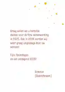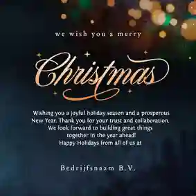 Een kerstkaart met logo is de ideale manier om je bedrijfsnaam nog eens onder de aandacht te brengen bij relaties. Daarnaast is het een mooie manier om medewerkers te bedanken voor hun inzet en samen vooruit te kijken naar het nieuwe jaar. In de kaartmaker kun je onze zakelijke kerstkaart met logo nog verder personaliseren. Pas de kleuren bijvoorbeeld aan naar jullie huisstijlkleuren, of voeg de bedrijfsslogan toe voor nog meer herkenbaarheid. Voor een extra luxe gevoel tippen we graag onze foliedruk kerstkaarten met logo.