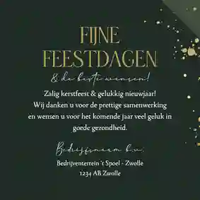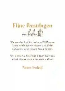 Een kerstkaart met logo is de ideale manier om je bedrijfsnaam nog eens onder de aandacht te brengen bij relaties. Daarnaast is het een mooie manier om medewerkers te bedanken voor hun inzet en samen vooruit te kijken naar het nieuwe jaar. In de kaartmaker kun je onze zakelijke kerstkaart met logo nog verder personaliseren. Pas de kleuren bijvoorbeeld aan naar jullie huisstijlkleuren, of voeg de bedrijfsslogan toe voor nog meer herkenbaarheid. Voor een extra luxe gevoel tippen we graag onze foliedruk kerstkaarten met logo.