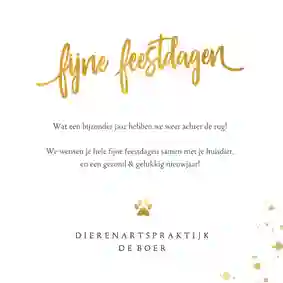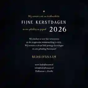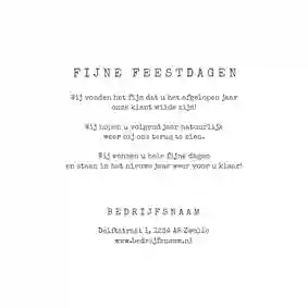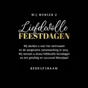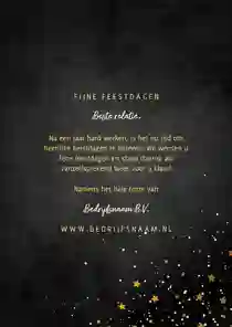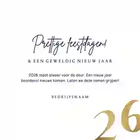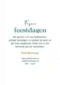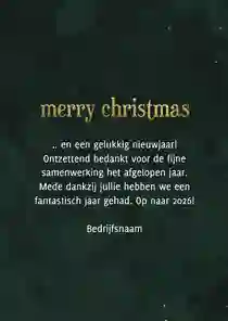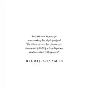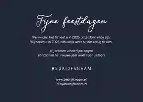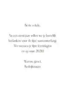 Een kerstkaart met logo is de ideale manier om je bedrijfsnaam nog eens onder de aandacht te brengen bij relaties. Daarnaast is het een mooie manier om medewerkers te bedanken voor hun inzet en samen vooruit te kijken naar het nieuwe jaar. In de kaartmaker kun je onze zakelijke kerstkaart met logo nog verder personaliseren. Pas de kleuren bijvoorbeeld aan naar jullie huisstijlkleuren, of voeg de bedrijfsslogan toe voor nog meer herkenbaarheid. Voor een extra luxe gevoel tippen we graag onze foliedruk kerstkaarten met logo.