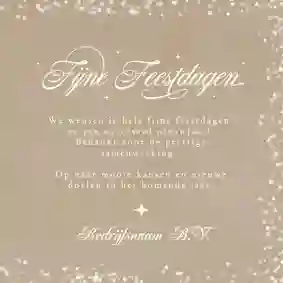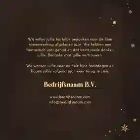 Een kerstkaart is niet compleet zonder een passende kerst- of nieuwjaarswens. Denk aan een dankwoord, een vooruitblik of een warme felicitatie voor het nieuwe jaar. De meeste kaarten bevatten al een voorbeeldtekst die je makkelijk kunt aanpassen. Op zoek naar nog meer ideeën? Neem dan een kijkje op onze inspiratie-omgeving voor zakelijke kerstkaarten.