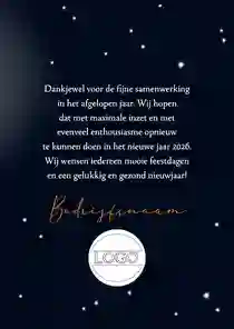 Een kerstkaart is een klein gebaar dat een groot verschil kan maken. Juist in de drukke decembermaand laat je ermee zien dat je je zakelijke relaties waardeert. Met een persoonlijke kerstkaart leg je weer even contact, bedank je voor de samenwerking en breng je je bedrijf op een sympathieke manier onder de aandacht. Een zakelijke kerstkaart maken is heel eenvoudig. Voeg een eigen foto toe, speel met kaders en figuren of kies voor een strakke professionele uitstraling. Je kunt bijvoorbeeld een kaart ontwerpen met een foto van jullie team of bedrijfspand.