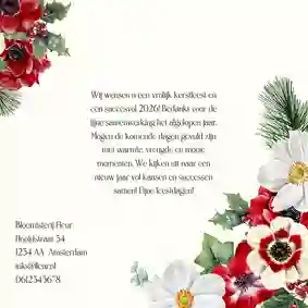 Een kerstkaart is een klein gebaar dat een groot verschil kan maken. Juist in de drukke decembermaand laat je ermee zien dat je je zakelijke relaties waardeert. Met een persoonlijke kerstkaart leg je weer even contact, bedank je voor de samenwerking en breng je je bedrijf op een sympathieke manier onder de aandacht. Een zakelijke kerstkaart maken is heel eenvoudig. Voeg een eigen foto toe, speel met kaders en figuren of kies voor een strakke professionele uitstraling. Je kunt bijvoorbeeld een kaart ontwerpen met een foto van jullie team of bedrijfspand.